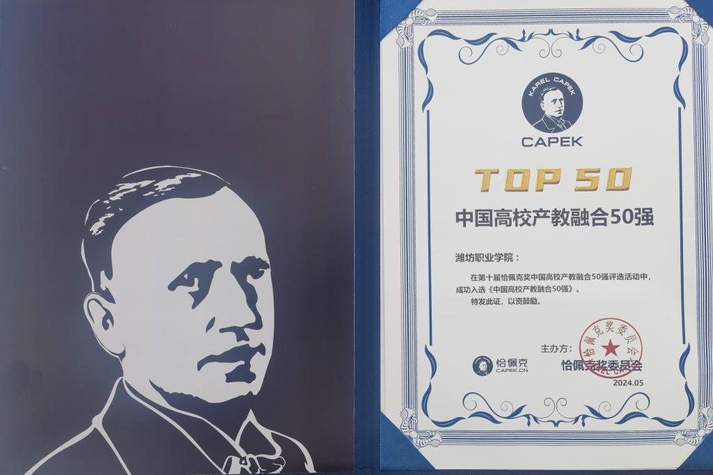 我院再次荣获恰佩克奖“中国高校产教融合50强”