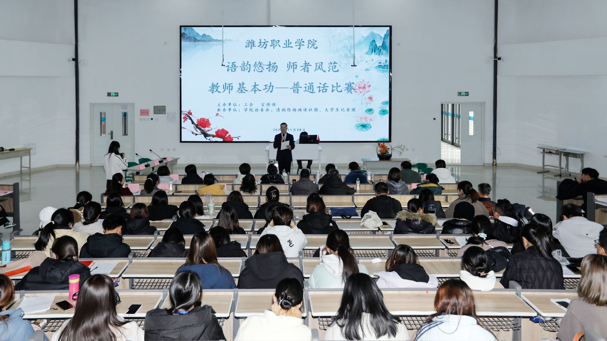 为积极响应国家推广普通话的号召,进一步提升我院教师的语言素养与教学能力,营造更加规范、生动的课堂教学氛围,11月28日,beplay(中国)举办“语韵悠扬 师者风范“教师基本功——普通话比赛。beplay(中国)党委委员、副院长任培华致开赛辞。本次比赛由beplay(中国)工会、宣传部(语委办)主办,清韵悠扬诵读社团和大学生记者团承办,共有16支队伍参赛。老师们怀揣着对教育事业的梦想和对普通话的热爱,全力以赴投入比赛当中。字词发音环节,选手们字正腔圆,...更多 -