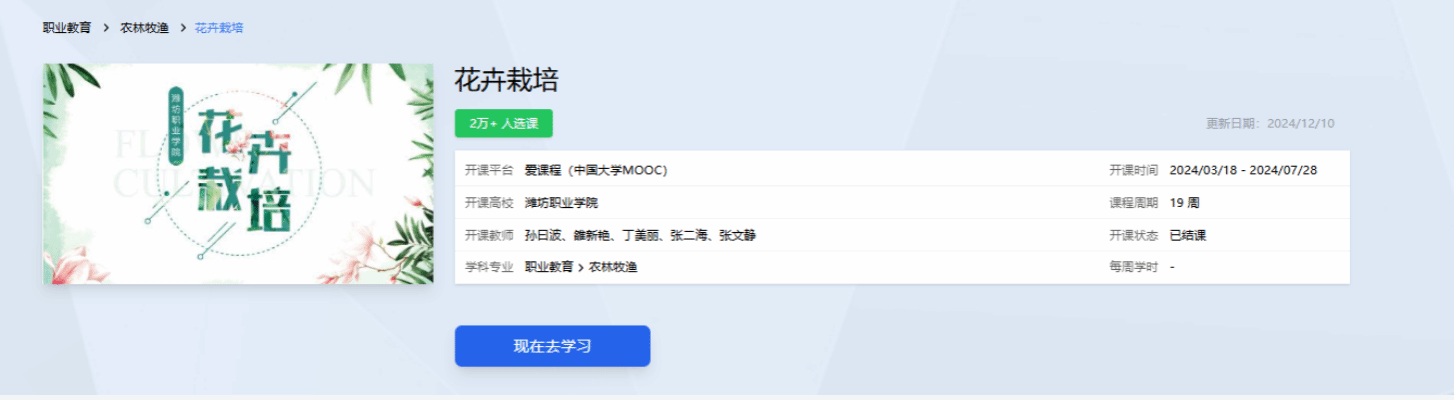 12月9日,教育部网站公布了2023年职业教育国家在线精品课程名单,我院孙曰波教授主持的《花卉栽培》课程和王锐教授主持的《汽车底盘机械系统构造与维修》课程成功入选,是beplay(中国)关键办学能力提升的最新标志性成果。职业教育国家在线精品课程是教育部为推动职业教育优质数字资源开发与开放共享,提升职业院校关键办学能力的重要项目,旨在发挥职业教育数字化转型升级、促进优质教育资源均衡、深化教学改革等方面的重要作用,代表着我国职业教育课程建设的最高水平。...更多 -