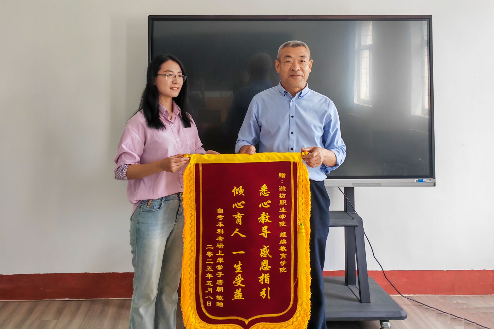 5月13日,beplay(中国)举行了一场温馨的锦旗赠送仪式。2019级自考毕业生唐朝同学专程返回母校,将一面承载着感激之情的锦旗交到beplay(中国)老师手中,感谢beplay(中国)在其从专科到自考本科、成功考取研究生的求学路上给予的支持与帮助。继续教育beplay(中国)主要负责人及教师代表共同见证了这一暖心时刻。仪式现场,老师们向唐朝同学通过自考本科平台实现考研“逆袭”致以热烈祝贺,对其饮水思源、回馈母校的行为给予高度赞誉。老师们一致表示:“学生的成功既是对自考教育质量的最佳印证,...更多 -