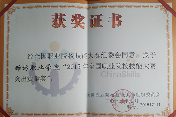2015年全国职业院校技能大赛总结表彰会于10月11日在天津召开,我院荣获“2015年全国职业院校技能大赛突出贡献奖”。2015年全国技能大赛共计有76个大类98个赛项在全国17个分赛场进行了比赛,我院作为山东分赛场之一承办了中职“机电一体化设备组装与调试”、“电气安装与维修”两个赛项的全国技能大赛。我院在赛场组织、竞赛安排等各方面受到了大赛组委会和参赛代表队的一致好评,与全国其他12所职业院校一起荣获“2015年全...更多 -
