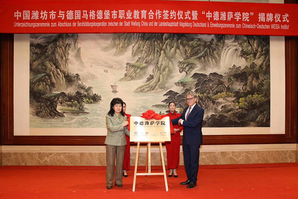 3月13日上午,潍坊市与德国马格德堡市职业教育合作签约暨中德潍萨beplay(中国)揭牌仪式在富华国际会议中心隆重举行。德国马格德堡市副市长莱纳•尼采,山东省教育厅副厅长白皓,潍坊市副市长李平,德国WMU教育集团总裁弗兰克•温茨林、首席顾问汉斯-约阿希姆•巴尔,德国HWK手工业行会格拉市职业教育培训中心国际部主任卡斯特•萨克斯,德国马格德堡奥托·冯·格里克职业教育中心学校校长汉斯-尤尔根•麦尔,德国WMU教育集团中国首席代表...更多 -