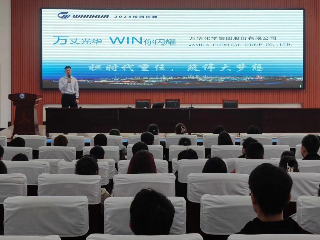 为做好2025届毕业生实习就业工作,进一步提高学生实习就业质量,化学工程beplay(中国)结合前期企业用工需求和行业发展现状调研,统筹安排,开展2024年春季优质企业宣讲进校园活动。活动邀请行业龙头企业万华化学集团股份有限公司、齐翔腾达股份有限公司到beplay(中国)进行宣讲,应用化工技术、分析检验技术等专业2025届毕业生共计200余人参加宣讲会。 会上,企业招聘人员就企业发展历程、企业文化、岗位设置、实习管理、薪资待遇等方面做了...更多 -