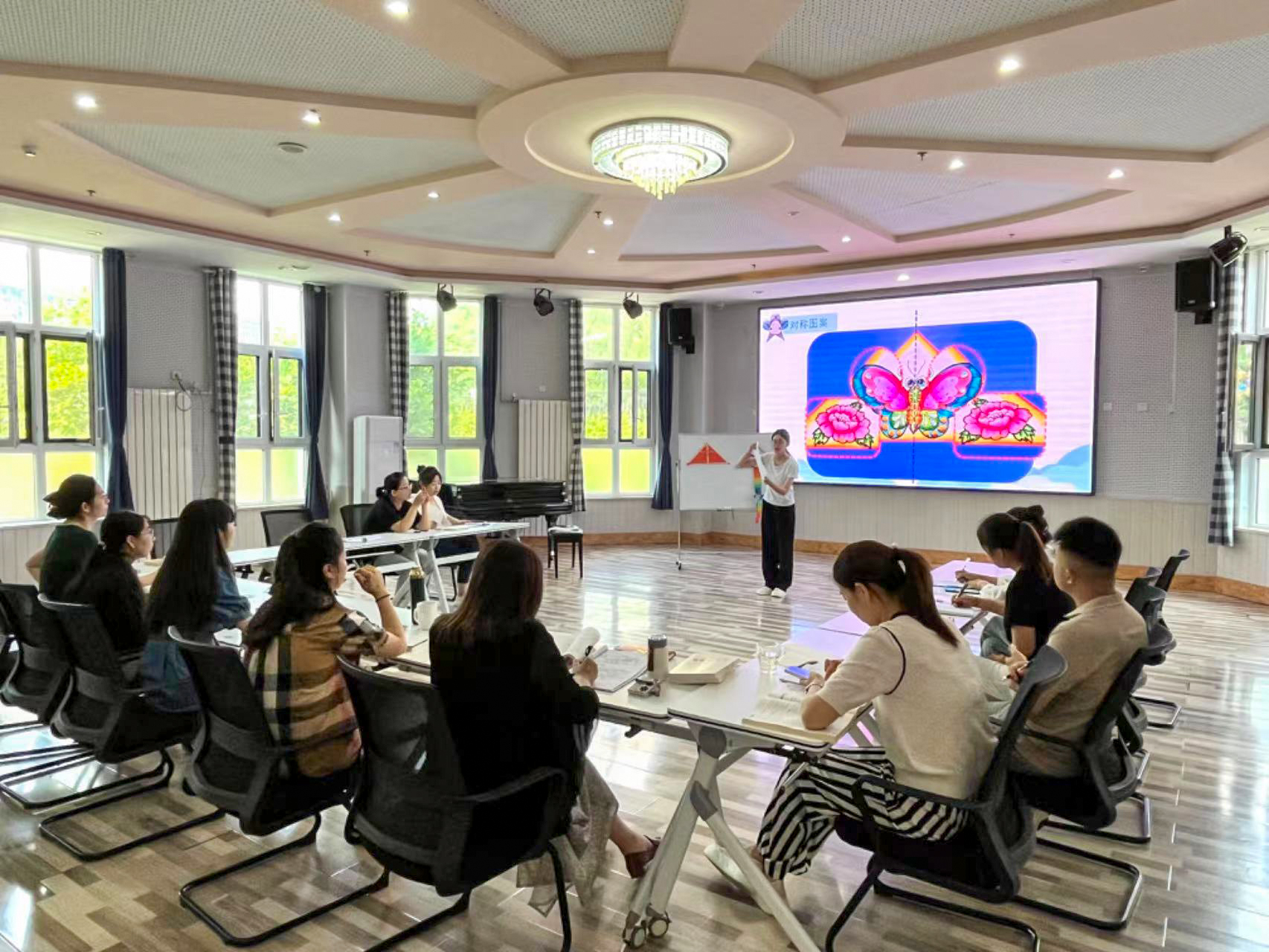 为促进教师专业水平提升,提高课程建设能力,6月13日下午,文化创意beplay(中国)学前教育专业教师一行5人到高新区实验幼儿园开展教研活动,观摩幼儿园优质课并针对幼儿园园本课程建设等进行研讨。 活动中,幼儿园教师代表和文化创意beplay(中国)学前教育专业学生代表首先展示了艺术领域集体活动《风筝飞上天》。随后,高新区实验幼儿园的园长们从集体活动的目标定位、设计理念、活动内容选取、教学手段运用、课件制作、师幼互动等方面做了全...更多 -