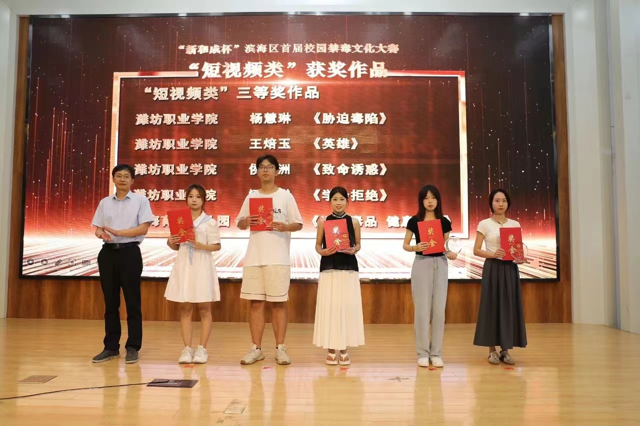 6月26日,由滨海区禁毒委员会主办,滨海区大学园管理办公室、滨海区教育分局、滨海区公安分局、滨海区融媒体中心协办的“新和成杯”滨海区首届校园禁毒文化大赛颁奖典礼在山东海事职业beplay(中国)隆重举行。我院受邀参加颁奖典礼,荣获二等奖1项、三等奖4项。 本届校园禁毒文化大赛旨在提高防范青少年药物滥用意识,扎实推进全环境立德树人建设,全面筑牢禁毒人民防线。大赛共收到短视频类作品69部,经过激烈角逐,最终选出一等奖1项、二等奖3项、...更多 -