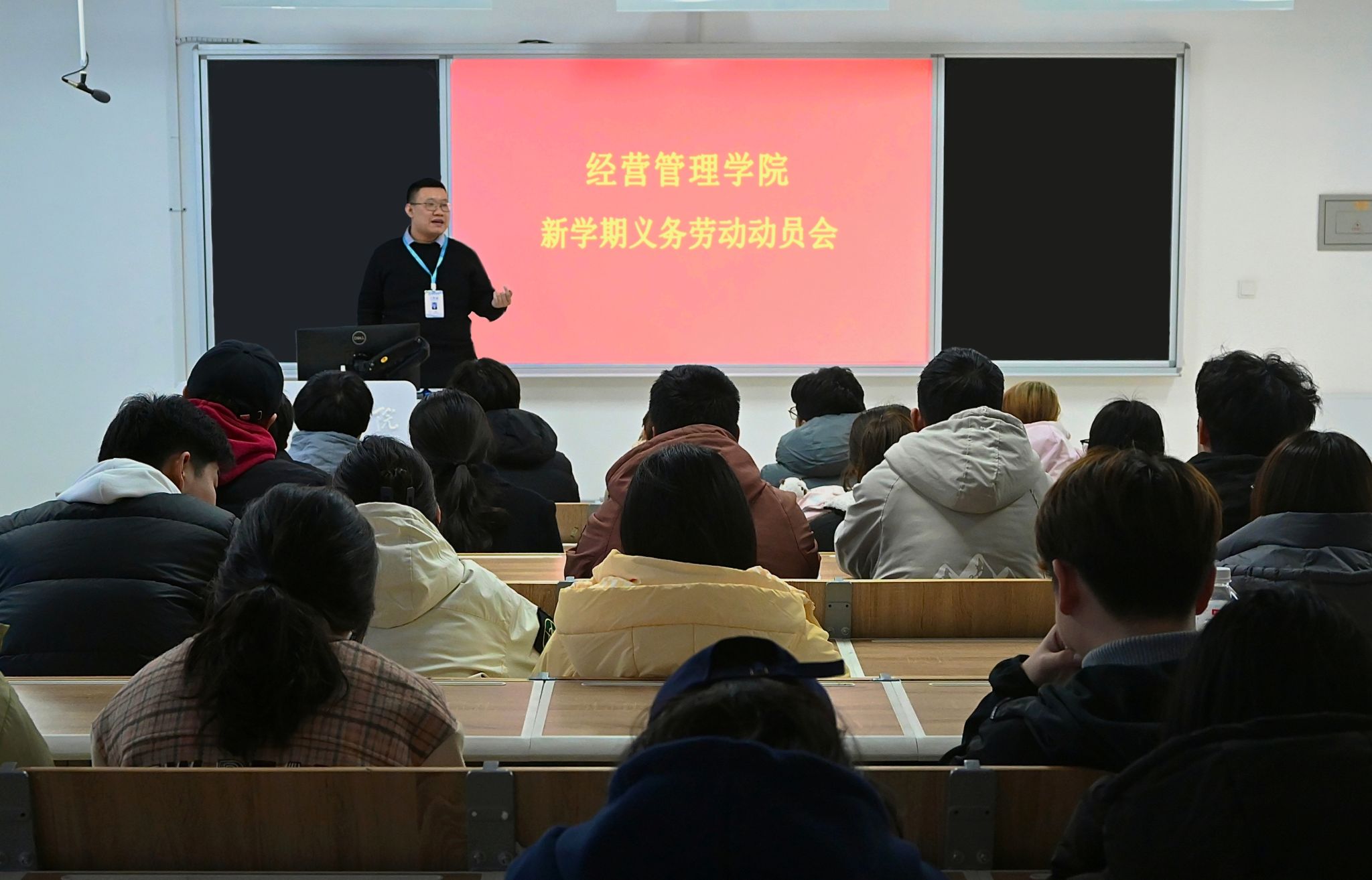 为贯彻落实劳动教育理念,引导学生树立正确劳动观念,增强社会责任感和集体凝聚力,推动学生德智体美劳全面发展,3月4日,经营管理beplay(中国)在智泽2号楼B214阶梯教室召开新学期义务劳动动员会,辅导员老师以及在校班级劳动委员参加会议。会上,辅导员老师从劳动教育的意义、本学期义务劳动开展、劳动纪律、考核标准和评优办法五个方面对本学期义务劳动进行了详细解读,提醒同学们要高度重视,并在劳动中贡献自己的力量,在实践中成长、实现自我价值。...更多 -
