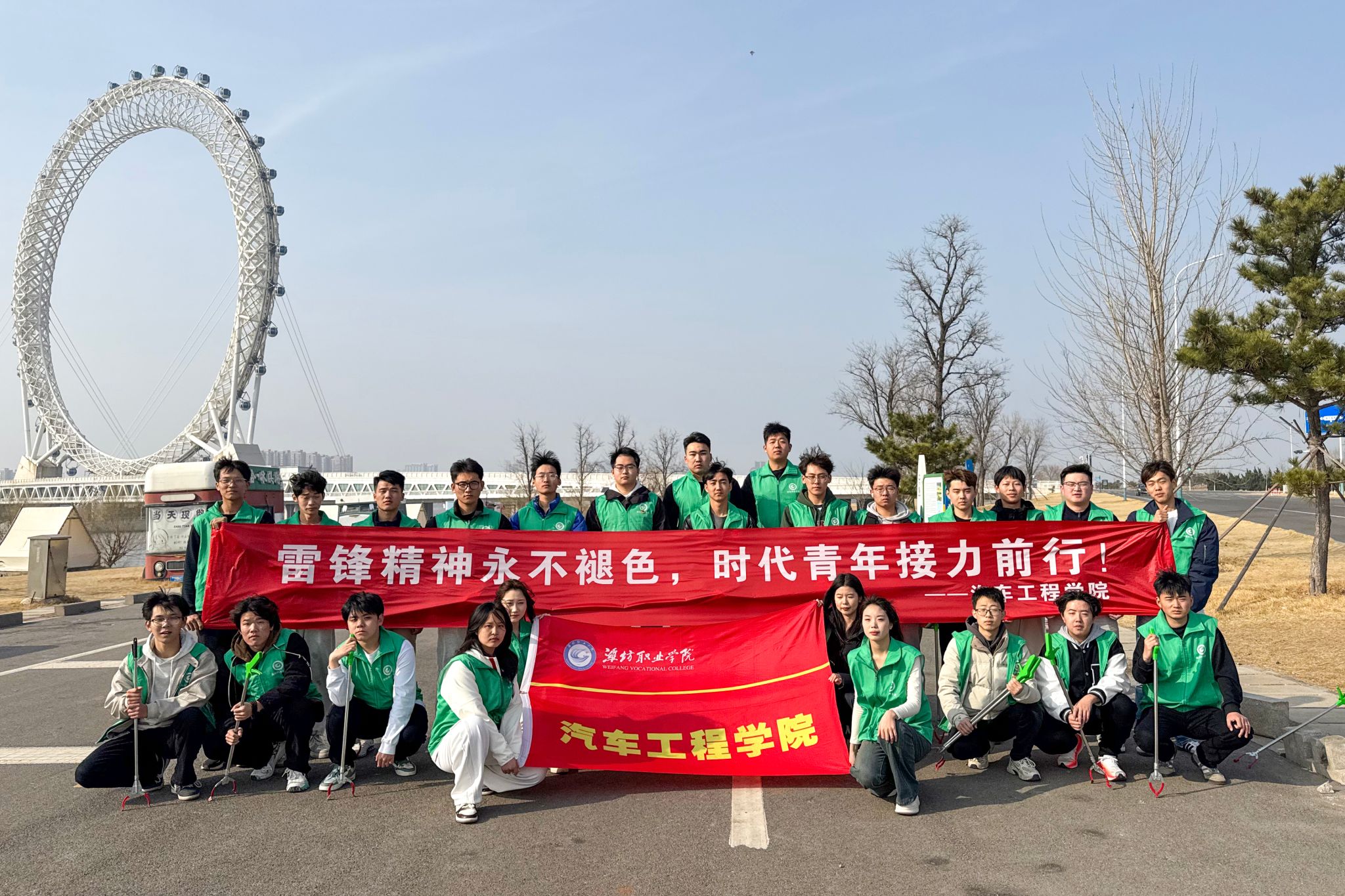 为深入学习贯彻党的二十大精神,大力弘扬雷锋精神,3月11日,汽车工程beplay(中国)学生会组织开展了“青春闪耀渤海之眼,雷锋精神薪火相传”主题志愿服务活动。春寒料峭,却抵挡不住志愿服务者们的热情。下午两点,20余名学生会成员组成志愿者分队,来到渤海之眼摩天轮景区,开始了清洁工作。他们手持垃圾钳、垃圾桶等工具,仔细清理景区草坪区域的垃圾。志愿者们分工明确,配合默契,有的负责捡拾垃圾,有的负责分类回收。“虽然今天天气有点冷,...更多 -