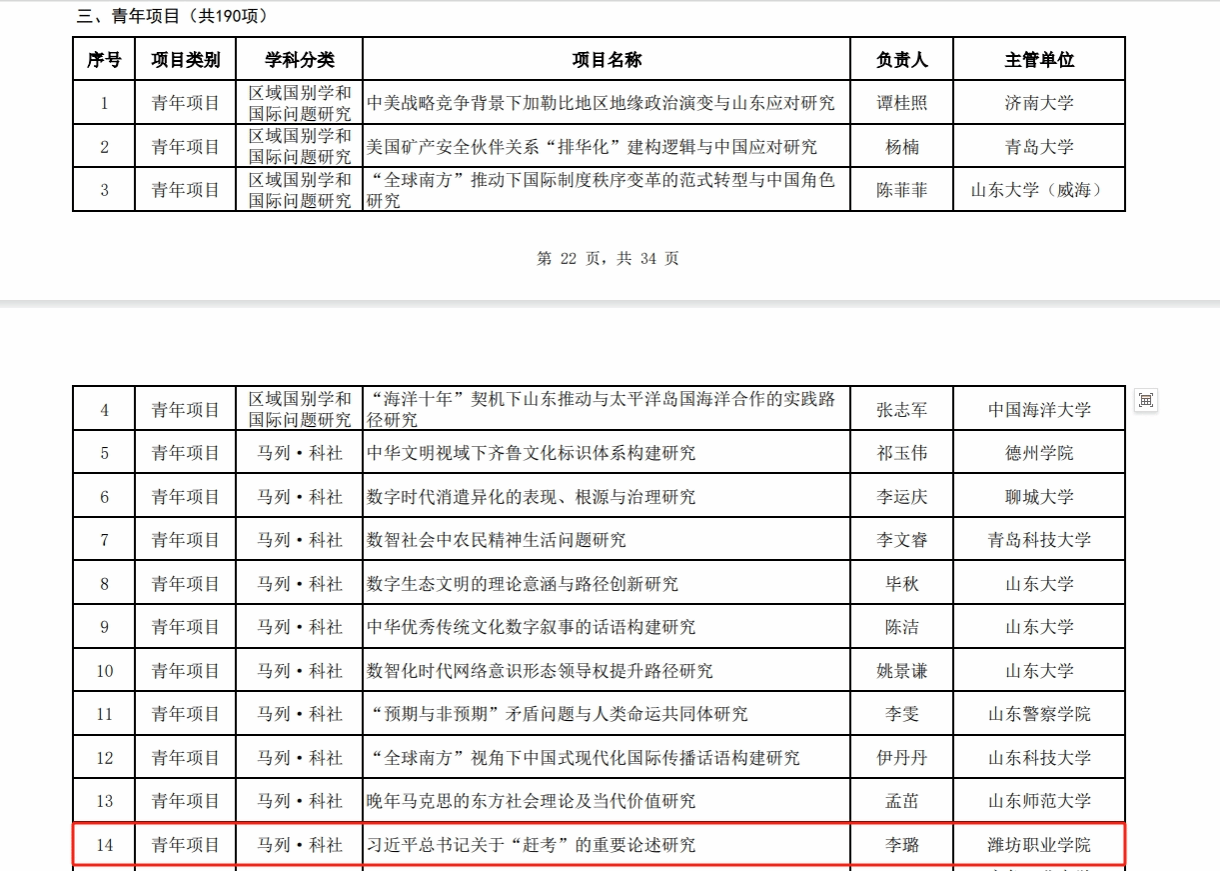 近日,山东省哲学社会科学工作办公室公布了2025年度山东省社科规划研究项目立项名单。马克思主义beplay(中国)李璐老师申报的《习近平总书记关于“赶考”的重要论述研究》获批青年项目立项,全省高职院校仅获批3个项目。此次立项实现了beplay(中国)在高层次科研项目上的新突破,也展现了beplay(中国)在社科研究领域的持续积淀与创新活力,为beplay(中国)科研高质量发展注入新动能。近年来,马克思主义beplay(中国)紧密围绕beplay(中国)“一申一争”高质量发展思路,持续强化有组织科研工作,...更多 -