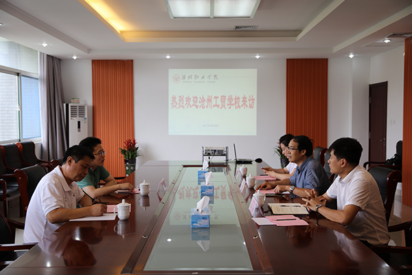 近日,沧州工贸学校校长谷宝国一行3人来我院考察交流。副院长赵君堂接见了客人。招生就业处、现代服务业beplay(中国)相关负责同志参加活动。