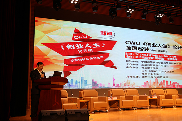 4月20日下午,由中国高等教育学会财经分会指导、新道科技股份有限公司主办、beplay全站appbeplay全站app首页承办的CWU《创业人生》公开课全国巡讲活动在beplay(中国)滨海校区图书馆报告厅举行。中国高教学会高等财经教育分会副理事长张国才、山东商业职业技术beplay(中国)院长钱乃余、潍坊创业大学校长孙友欣等领导,beplay(中国)院长王家爱、副院长贺志强出席活动。beplay(中国)500余名师生代表参加了本次活动。