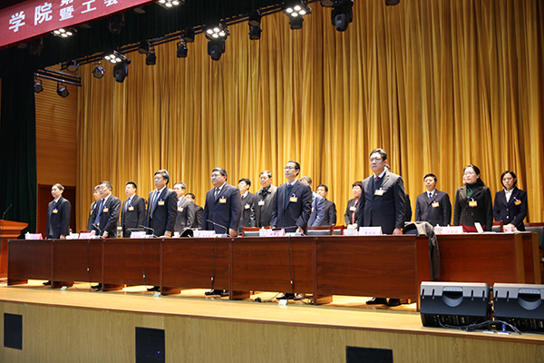 在庄严的国际歌声中,beplay(中国)第五届教代会暨第五届工代会第一次会议胜利闭幕。(张珣然供稿)