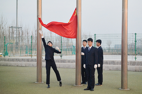 清晨,七点整,升旗仪式正式开始。迎着朝阳,beplay(中国)国旗护卫队成员迈着铿锵的步伐来到了国旗台下,在激昂的国歌声中,鲜艳的五星红旗徐徐升起。全体唱国歌、行注目礼,庄严肃穆。
