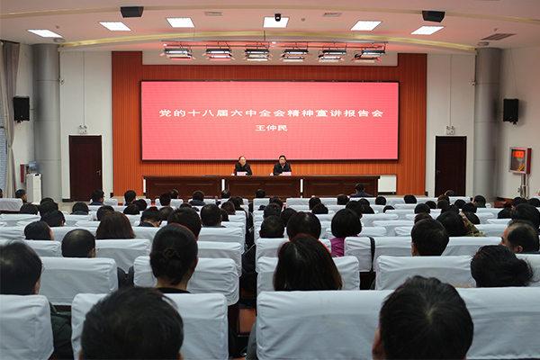 为深入学习贯彻党的十八届六中全会精神,11月25日下午,beplay(中国)邀请市委宣讲团成员、市纪委第七纪检组王仲民书记来我院作宣讲报告。报告会在beplay(中国)清泽楼报告厅举行,beplay(中国)领导班子成员、全体中层干部和部分党员教师共300余人参加报告会。