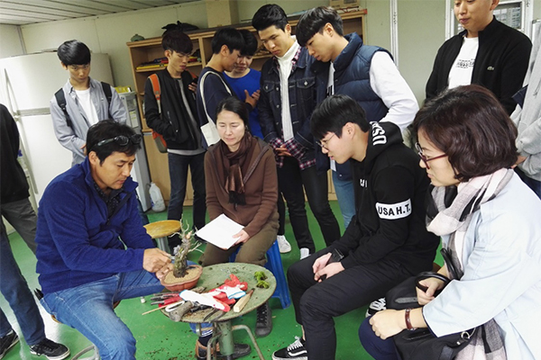 研修期间,两位教师按照学习计划分别在园林技术专业及化妆美容专业进行了学习与观摩。园林技术专业主要在莲庵大学的盆景园、热带植物温室、兰花温室、菊花大棚、盆花温室、蔬菜无土栽培温室、草莓智能控制温室等进行了观摩学习、实践操作,并与韩方教师就专业问题进行了深入讨论和交流。化妆美容专业主要在皮肤美容、彩妆、美甲、美发等方向进行了学习和观摩。