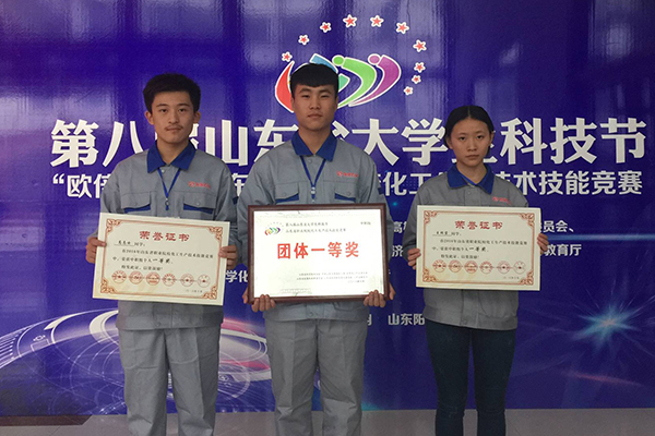10月14日至16日,第八届山东省大学生科技节化工生产技术技能竞赛在滨州阳信职业中专学校举办。我院选派中高职学生组成的两支代表队分别获中高职组竞赛团体一等奖,其中高职学生胡恩政、吴明泽、张晓农获团体一等奖第一名,个人全能一等奖前3名;中职学生李晓波仿真成绩获第一名,3名中职学生均获个人全能一等奖。4名教师获“优秀指导教师”称号。