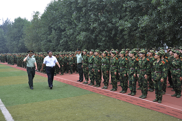 宋桂言宣布新生军训胜利结束。(张珣然供稿)