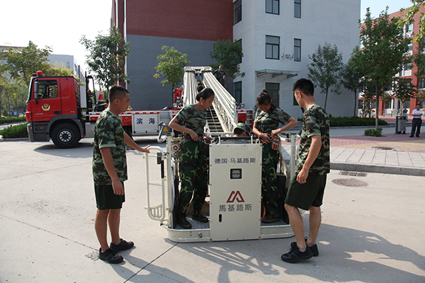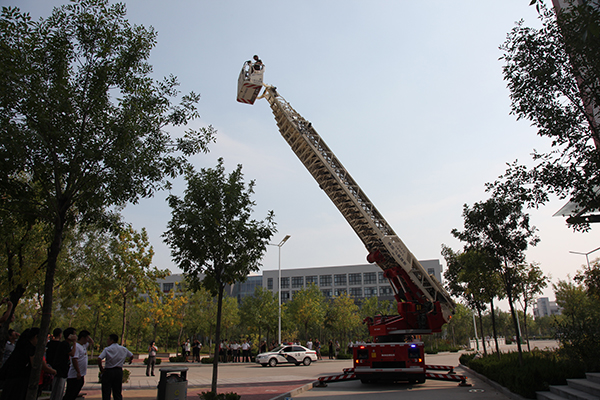14点30分,随着演习总指挥一声令下,演习正式开始。模拟火险现场,工作人员拉开发烟罐,警报器随之响起,同学们在辅导员、班主任及宿舍管理人员的引导下,做着规避动作,向安全地带迅速撤离,到达集结场地清点人数并向演习总指挥报告。整个疏散演习过程时间短、速度快,井然有序,达到预期效果。随后进行消防灭火演练,消防大队教官向新生们讲解了消防知识并对灭火器使用方法进行了演示,部分学生在消防人员的指导下体验使用了灭火器。