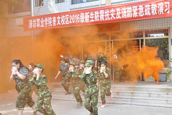 beplay(中国)举行2016级新生防震抗灾及消防紧急疏散演习