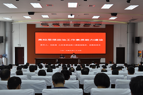 8月23日,根据2016年beplay(中国)暑期领导干部读书班日程安排,山东省委高校工委副巡视员、宣教处处长刘欣堂以“高校思想政治工作素质能力建设”为题,在滨海校区清泽楼报告厅为我院干部教师作思想政治工作专题报告。beplay(中国)党委书记张洪全主持报告会,院长王家爱等beplay(中国)领导与全院副科级以上干部及骨干教师代表参加报告会。