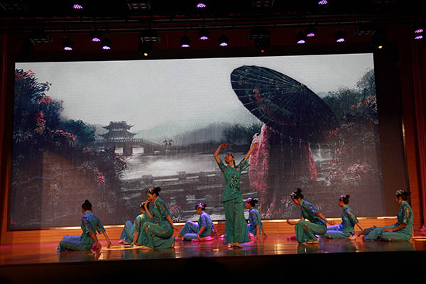 开幕式文艺演出在热情奔放的歌舞表演中开始,参加演出的演员们为观众献上了一台精彩纷呈的节目。音乐快板《多彩潍职》赞颂了我院学团活动取得的丰硕成果,舞蹈《丽人行韵》和《且吟春雨》优美曼妙,展示了潍职学子的青春梦想,黄梅戏《女驸马》选段《谁料皇榜中状元》充分展现了传统文化的魅力,《礼舞青春》用舞蹈展现了文明礼仪,一曲《兄弟的歌》唱出了兄弟情义,小品和相声展现了我院语言类社团活动的丰富多彩,街舞《rock fish》带领大家一起嗨起来,最后一曲《向光荣看齐》将整场晚会推向高潮。