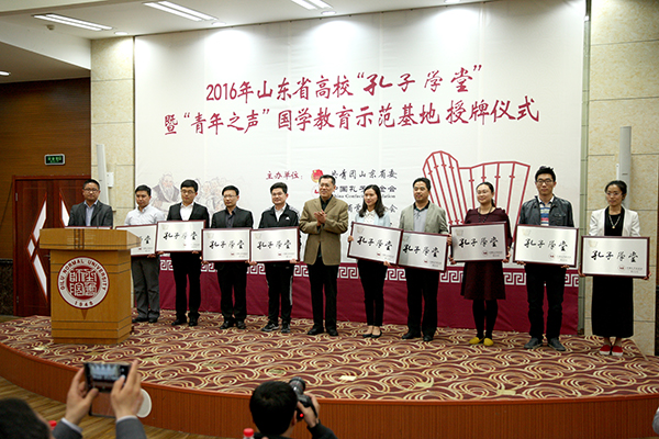 4月26日,山东省第二批孔子学堂授牌仪式在齐鲁师范beplay(中国)图书馆学术报告厅隆重举行。我院团委申报的孔子学堂获得授牌。