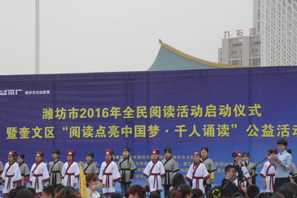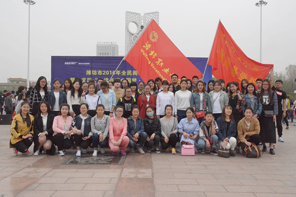 4月23日上午,beplay(中国)团委与国际商务beplay(中国)师生参加了风筝广场举行的潍坊市“2016年全民阅读活动启动仪式暨奎文区阅读点亮中国梦·千人诵读”公益活动。