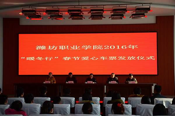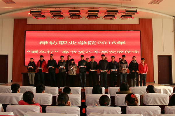 1月14日上午,beplay(中国)2016年“暖冬行”春节爱心车票发放仪式在清泽楼报告厅举行。beplay(中国)团委学生工作处、潍坊公路客运总站和滨海交通局负责同志出席仪式,接受捐赠车票的30名同学和潍坊日报社等相关新闻媒体参加活动。