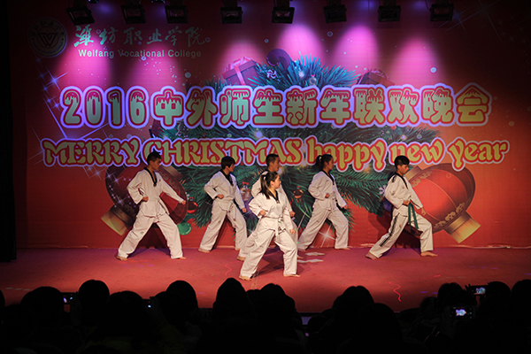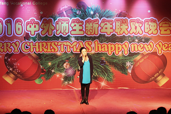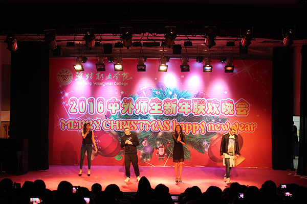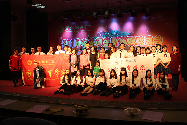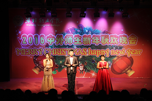 12月23日晚,2016中外师生新年联欢晚会在奎文校区报告厅举行。国际交流与合作处、团委学生工作处、国际商务beplay(中国)、中专部相关负责同志及中外师生500余人观看了演出。