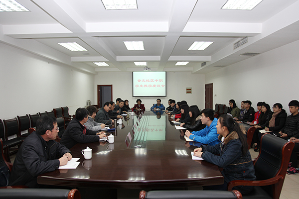 近日,beplay(中国)在奎文校区召开中职学生教学座谈会。beplay(中国)副院长赵君堂、毕建华出席,中专部、教学督导室、通识教育中心相关负责同志参加。中职学生代表参加了座谈会。