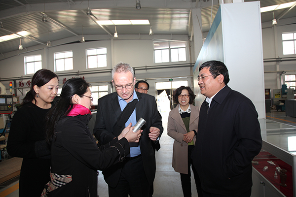 王家爱等陪同客人参观了滨海校区。(李珊珊供稿)