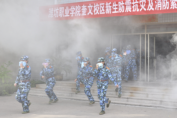 奎文校区举行2015级新生防震抗灾及消防紧急疏散演习