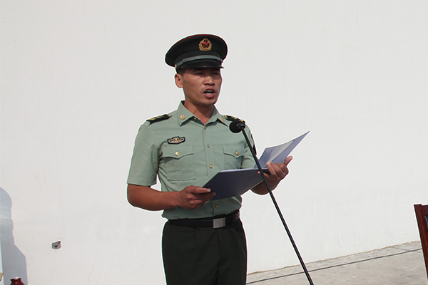 军训教官代表余旭、教师代表张建奎和新生代表丁云斐分别作了发言。随后教官们带来了精彩的军事科目示范表演,赢得全体人员雷鸣般的掌声。
