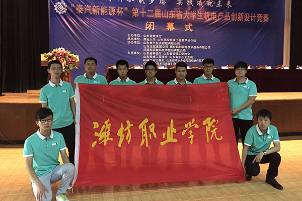 由山东省教育厅主办的“泰汽新能源杯”第十二届山东省大学生机电产品创新设计竞赛,8月17日至20日在烟台大学举行。我院共有12项作品参赛,11项获奖,其中获一等奖5项、二等奖2项、三等奖4项,并有2项获企业奖学金。在参赛的81所院校(含本科和高职)中名列前茅。解永辉、康立业、姜雪燕、马海洋、于翠玉五位教师获优秀指导教师荣誉称号,我院再度蝉联“优秀组织单位”奖。