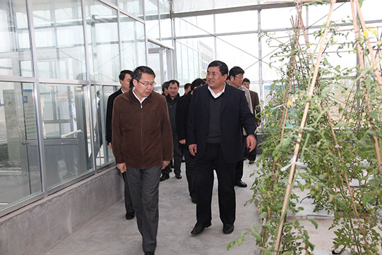 于文涛对我院近年来发展所取得的成绩表示赞赏,随后实地查看了滨海校区农林智能温室和教学实训设施。(王晓健供稿)