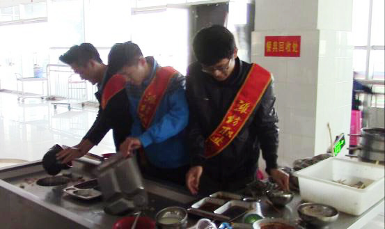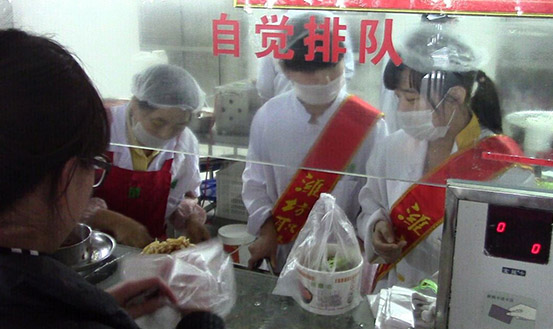 志愿者们分为四个小组,分别负责盛免费米粥、餐口卖饭、维持餐厅买饭秩序及收拾餐具。同学们在志愿者的协调下排队买饭,并依次领取免费米粥。同时餐口卖饭的志愿者仔细询问同学们的买饭需求,一份份热腾腾的饭菜递到打饭者的手中。餐具回收处,志愿者们认真回收并整理同学们用过的餐具,并提醒同学们注意勤俭节约。(郭大路供稿)