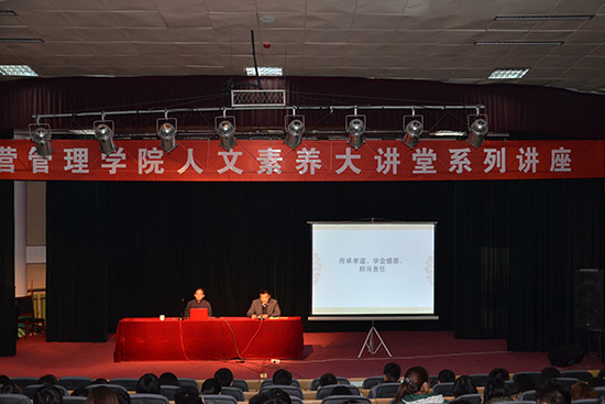 11月4日,经营管理beplay(中国)人文素养大讲堂系列讲座之“传承孝道,学会感恩,担当责任”专题讲座在奎文校区报告厅举行。该院党支部负责同志、班主任及500余名学生代表参加。