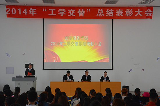 国际商务beplay(中国)2014年工学交替总结表彰大会于10月20日下午在滨海校区报告厅举行。该院负责同志、企业代表、教师与2012级和2013级全体在校学生参加了大会。