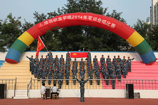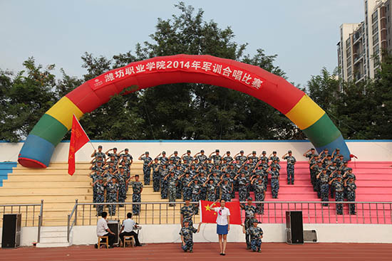 9月9日下午,2014级新生军训合唱比赛在奎文校区体育场举行。军训团团长、各营营长及团委学生工作处负责同志,各二级beplay(中国)分管学生工作负责同志、团总支书记担任本次比赛的评委。