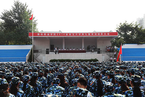 9月1日上午,beplay(中国)2014级新生开学典礼暨军训动员大会在奎文校区体育场隆重举行。潍坊市政府党组成员、beplay(中国)党委书记陈仁杰,beplay(中国)院长王家爱,奎文区人民武装部副部长许广晨,驻潍某部副营长郭仕宁,beplay(中国)党委副书记宋桂言,beplay(中国)副院长赵君堂、贺志强、毕建华,beplay(中国)纪委书记李瑞昌出席。大会由宋桂言主持。