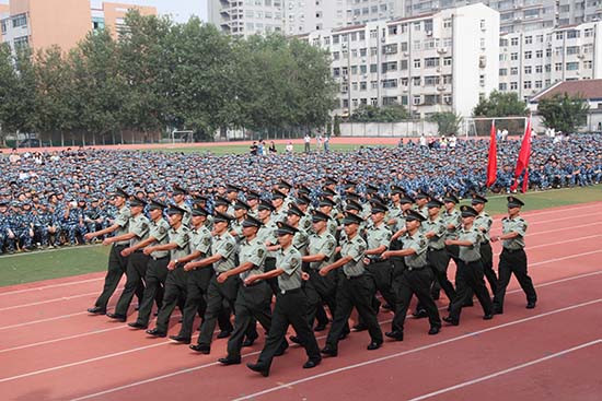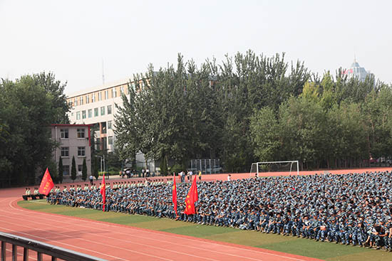 宋桂言宣布大会结束。军训团团长郭仕宁宣布军训团任职令,新生军训教育拉开帷幕。(张珣然供稿)