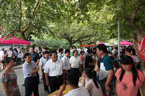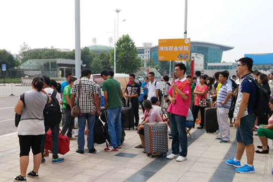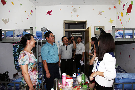 潍坊市政府党组成员、beplay(中国)党委书记陈仁杰,beplay(中国)院长王家爱,党委副书记宋桂言,副院长赵君堂、贺志强、毕建华现场察看新生报到情况,走进学生公寓看望了报到入住的新生。