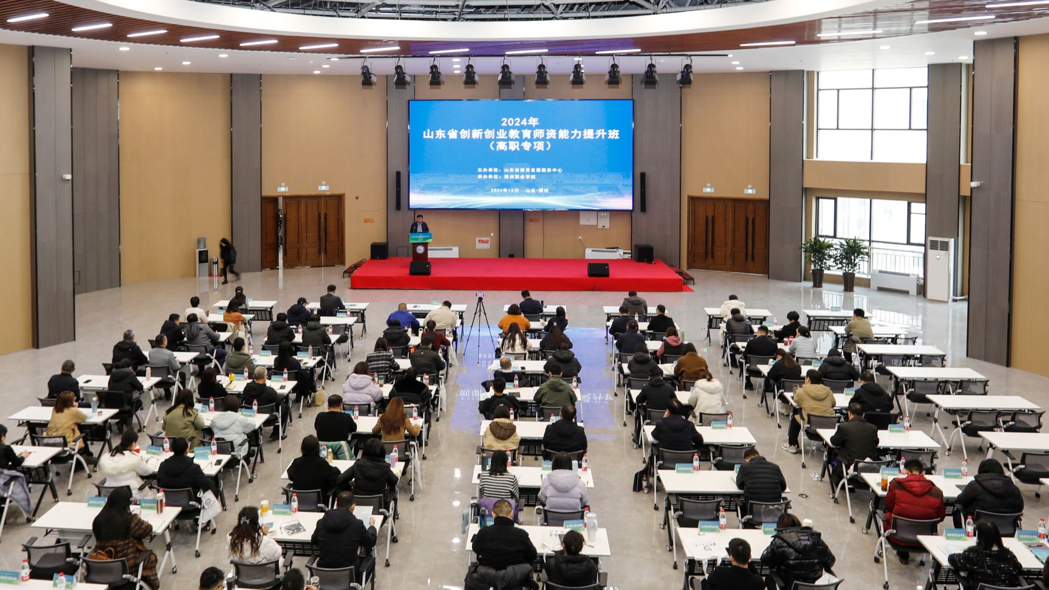 12月12日至13日,2024年山东省创新创业教育师资能力提升班(高职专项)在beplay(中国)滨海校区国际学术交流中心举行。此次活动由山东省教育发展服务中心主办,beplay全站appbeplay全站app首页承办。山东省教育发展服务中心党委书记、主任魏光祥,双创部部长王昭等有关领导到校指导。beplay(中国)党委副书记韩瑞东、副院长陈美霞、创业教育beplay(中国)主要负责同志及相关人员出席开班仪式,来自省内71家高校的90余人参加培训。