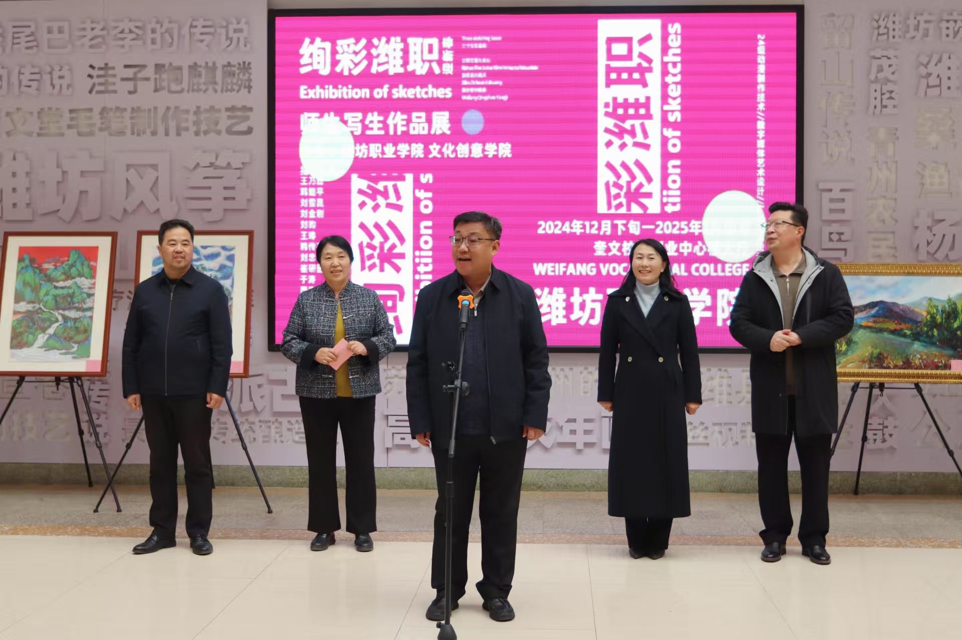 12月25日上午,文化创意beplay(中国)“绚彩潍职迎新春”师生写生作品展在奎文校区创新创业中心开展。beplay(中国)党委副书记韩瑞东,党委委员、办公室(统战部)主任(部长)刘志艳,党委委员、宣传部(精神文明建设办公室)部长(主任)鞠桂芹,文化创意beplay(中国)党政负责同志及200余名师生代表参加活动。