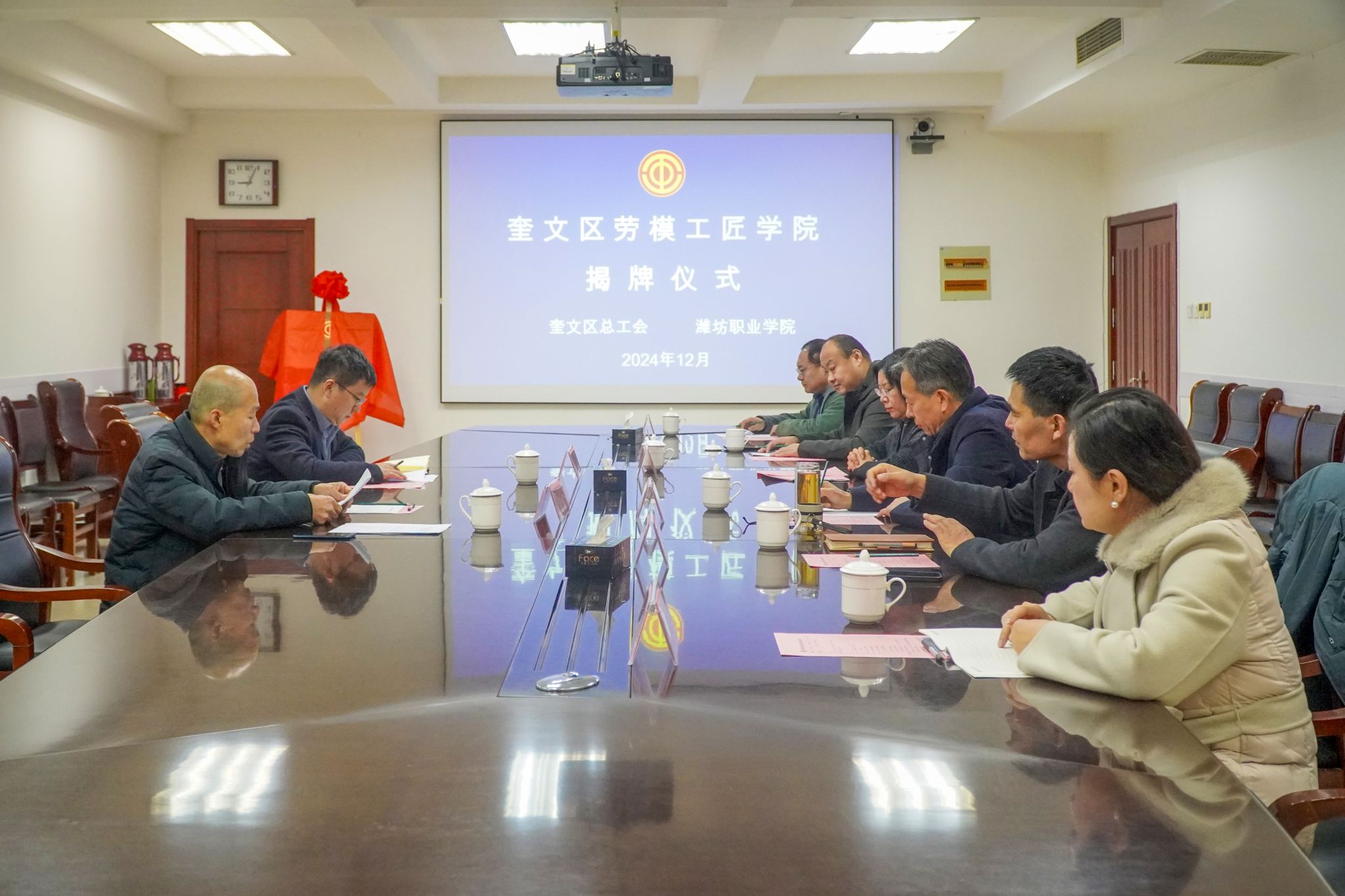 12月31日,奎文区劳模工匠beplay(中国)在beplay全站appbeplay全站app首页奎文校区举行揭牌仪式暨合作发展座谈会。beplay全站appbeplay全站app首页党委委员高凌云,奎文区总工会党组成员、一级主任科员李军,beplay(中国)工会主席,教务处、继续教育beplay(中国)、机电工程beplay(中国)负责人及教师代表出席活动。