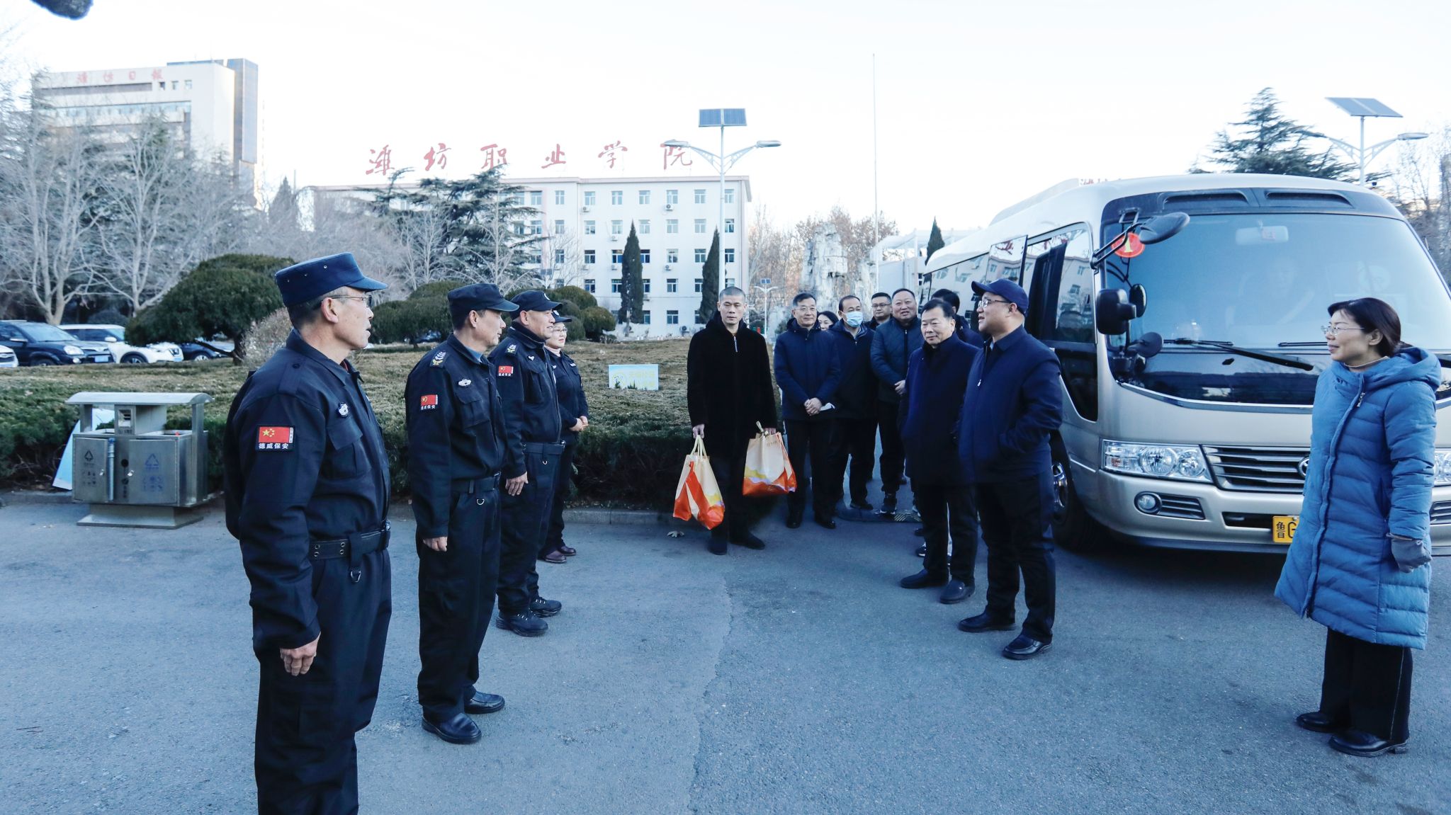 beplay(中国)领导先后来到奎文校区和滨海校区,与值班人员进行座谈交流,向他们致以节日的祝福和诚挚的问候。韩瑞东表示,过去的一年,beplay(中国)各方面发展取得了可喜成绩,得益于全体师生员工的努力拼搏和辛勤付出。在新的一年里,希望大家继续凝心聚力,全力以赴,奋力开创beplay(中国)高质量发展新局面,为申报“新双高”和争办职教本科院校打下坚实基础。韩瑞东指出,春节是中华民族的传统节日,大家舍小家顾大家,站岗值班,恪尽职守,体现了爱岗敬业的奉献精神,希望全体值班人员认真履行职责,加强校园安全巡逻,注意设备运行监管,确保春节期间各项工作正常运转,校园平安稳定,并对大家的辛勤付出表示衷心感谢。