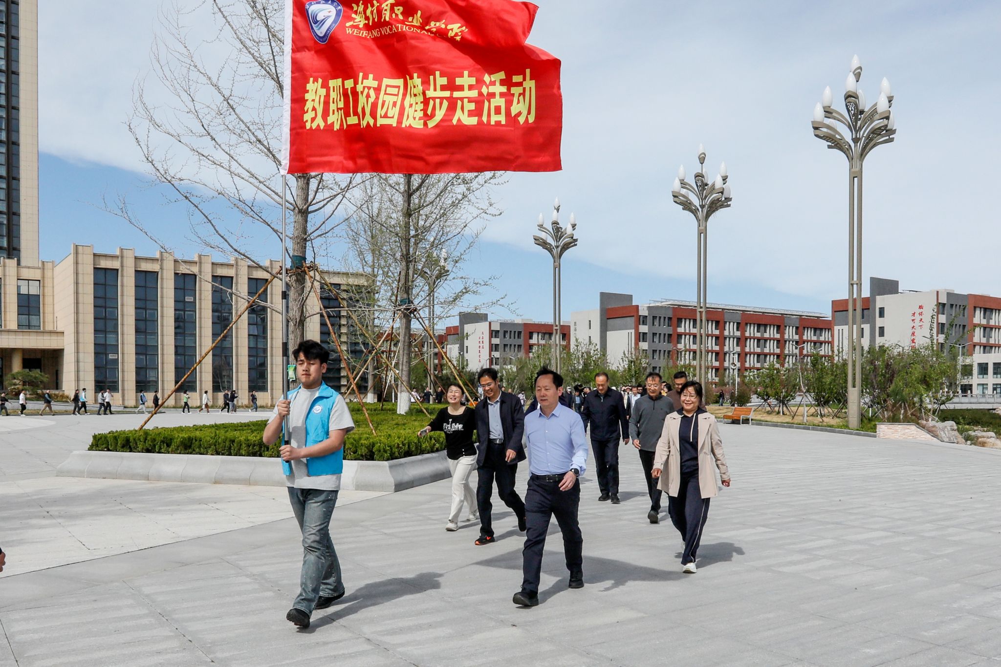 春风拂面,绿意盎然。为贯彻落实《全民健身计划(2021-2025年)》《健康中国行动(2019-2030年)》《进一步加强尊师惠师工作的若干措施》,倡导“快乐工作,健康生活”理念,引导健康工作生活方式,4月24日下午,beplay(中国)在滨海校区南区、北区和奎文校区同步组织开展教职工校园健步走活动。beplay(中国)在校党政领导班子成员与500余名教职工一同体验校园健步走的愉悦,感受春日生机勃发的美好。beplay(中国)党委书记王浩为教职工健步走鸣枪发令。党委委员高凌云主持活动并作动员讲话。