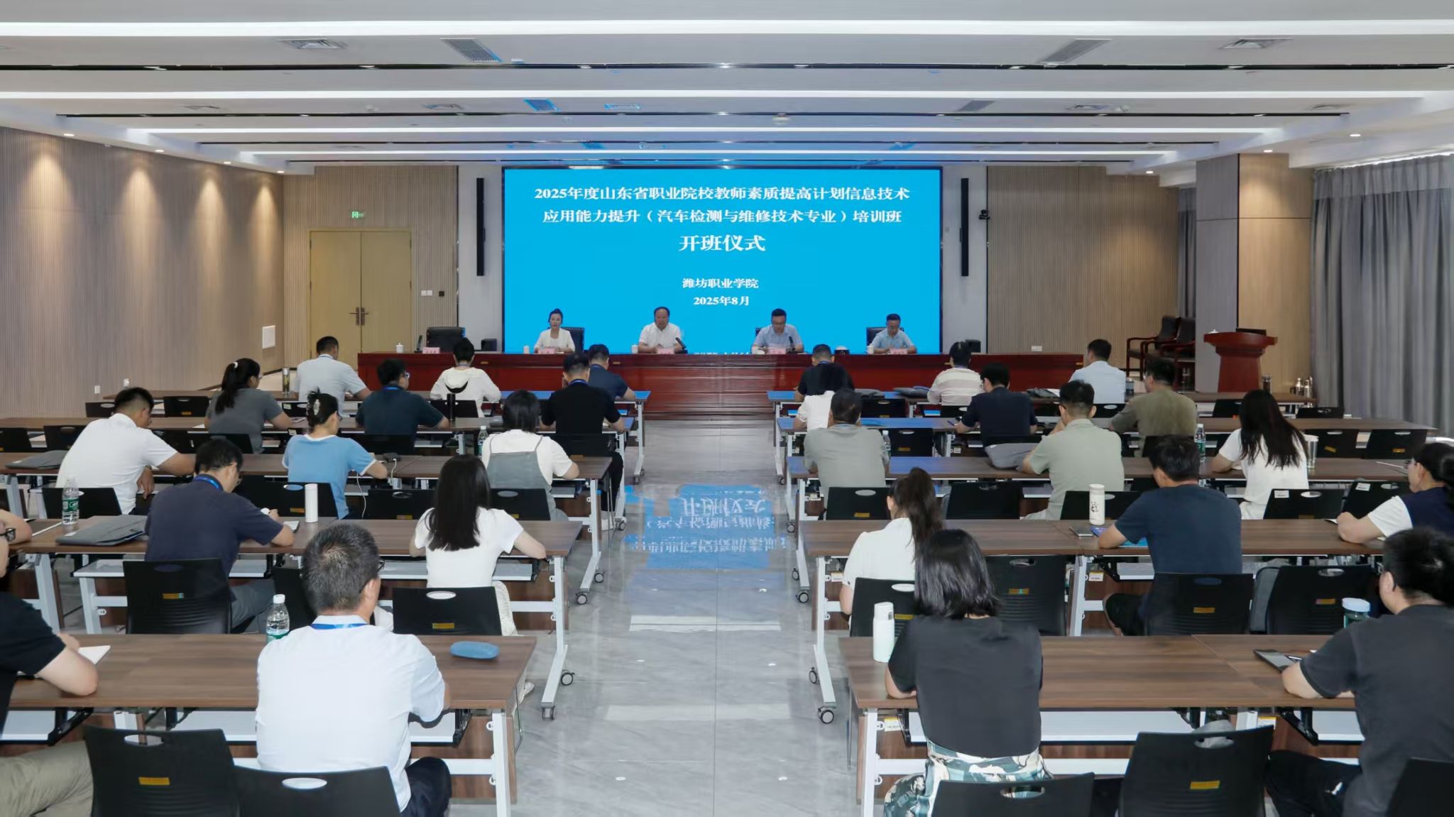 8月12日上午, 2025年度山东省职业院校教师素质提高计划信息技术应用能力提升(汽车检测与维修技术专业)培训开班仪式在beplay(中国)滨海校区举行。beplay(中国)党委委员、副院长付一明,党委委员、组织人事处(离退休工作处)处长于涛,教师工作部与汽车工程beplay(中国)主要负责同志及来自全省高职院校的30名中青年骨干教师参加活动。
