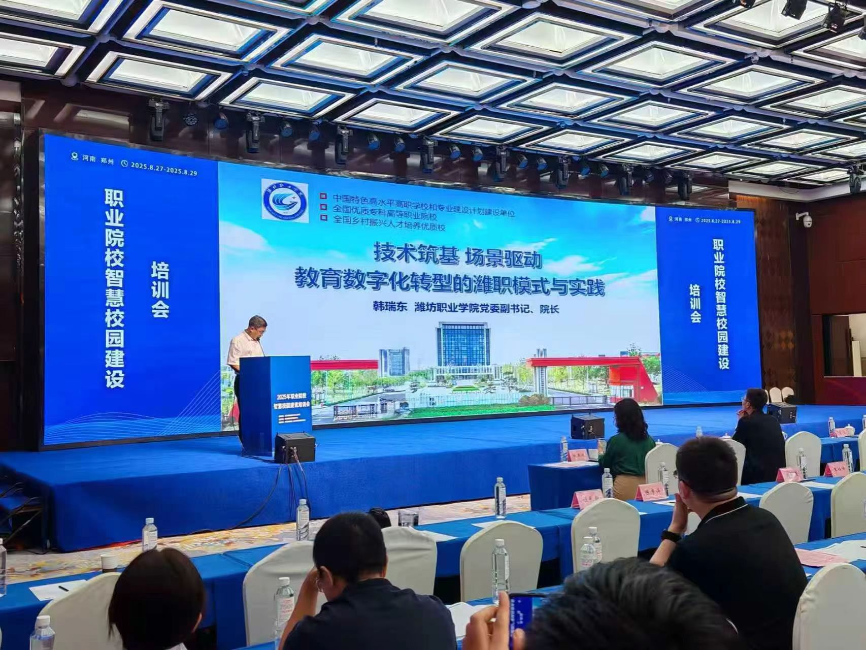 8月28日,由教育部职业教育与成人教育司指导、教育部教育管理信息中心主办的2025年职业院校智慧校园建设培训会(第三期)在郑州举行。来自教育部职成司、教育部信息中心、清华大学的领导和专家及全国27个省(自治区、直辖市)192所中高职院校的300余名代表参会,beplay(中国)院长韩瑞东受邀在会上作了经验分享。