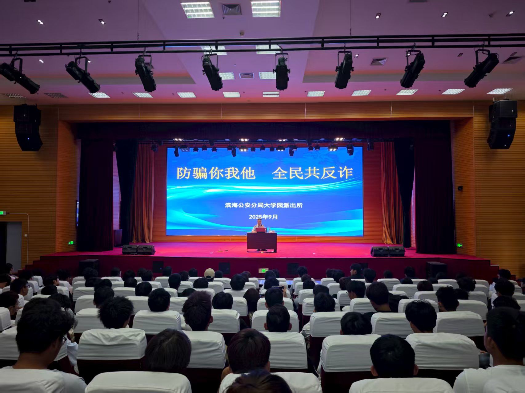 在滨海校区图书馆报告厅,滨海大学园派出所副所长王丽鹏结合丰富的一线办案经验,为师生带来深入讲解。他首先明确了电信网络诈骗的定义,并重点剖析了其“非接触式作案”“手法翻新快”等核心特点,帮助师生清晰认识诈骗本质。随后,他围绕48大类、100余种诈骗类型,着重剖析了刷单返利、网络贷款、冒充客服退款等在大学生群体中高发的诈骗手法,通过真实案例还原了骗子“以小额佣金获取信任”等常见套路,使师生直观了解诈骗分子的作案逻辑。讲解过程中,王副所长还总结了“刷单即诈骗”“网络交易须走正规平台”等四项实用提醒,现场指导师生下载并启用“国家反诈中心”APP,传授“未知链接不点击、陌生来电不轻信”等防骗口诀,切实提升了师生的识骗、防骗能力。