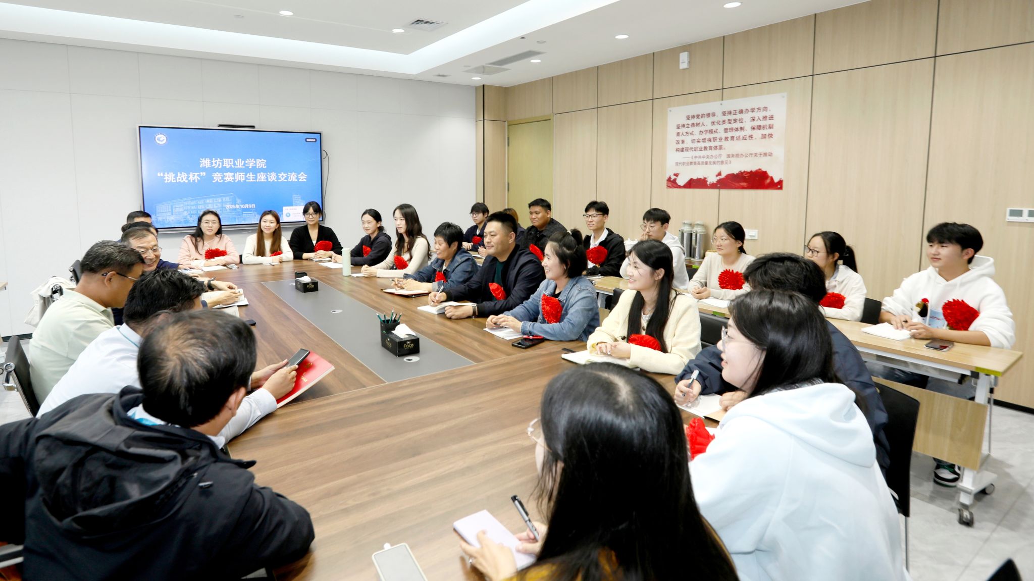 座谈会上,韩瑞东向获奖团队表示热烈祝贺,对大家在备赛与参赛过程中的辛勤付出给予高度认可。他指出,此次两项作品斩获国赛特等奖,是beplay(中国)坚持以科技创新引领人才培养、深化 “以赛促学、以赛促教、以赛促创”理念的生动实践,充分展现了潍职师生锐意进取、勇于创新的精神风貌。他向参赛团队提出三点希望:一是希望全体师生以此次获奖为新起点,持续激发创新潜能,聚焦行业领域关键技术难题,敢于探索、勇于突破,在科技创新的道路上不断攀登新高峰,并将比赛中形成的创新理念、学习方法传承下去,让更多学生受益;二是强调这份荣誉不仅属于获奖团队,更属于整个beplay(中国),是全体师生共同努力的结果,为beplay(中国)“双高建设”和高质量发展注入了强劲动力;三是向指导老师的悉心指导、参赛学生的刻苦钻研,以及各部门在赛事组织、资源保障等方面的支持表示衷心感谢,正是各方的协同配合,才为赛事佳绩的取得奠定了坚实基础。